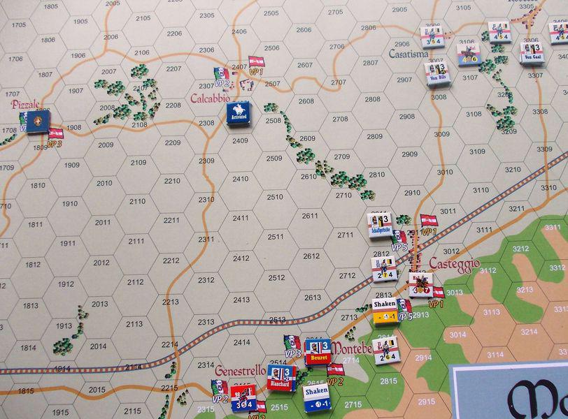 La battaglia di Montebello dura 10 turni e non ha regole specifiche, salvo l'assegnazione di ordini specifici alle unità dei generali Beuret (advance), Blanchard (stand), Schattlosche (stand), Von Gaal (Reserve), Von Bils (Reserve) e Prinz Hessen (Reserve). La battaglia è vinta da chi avrà fatto più Punti Vittoria (PV), sapendo che ci sono dieci città obiettivo sul campo (ognuna delle quali assegna un numero di PV che varia da 1 a 10 e può cambiare a seconda se sia il piemontese o l'austriaco a controllarla) e che ogni unità eliminata vale 2 PV (1 PV per i leaders).