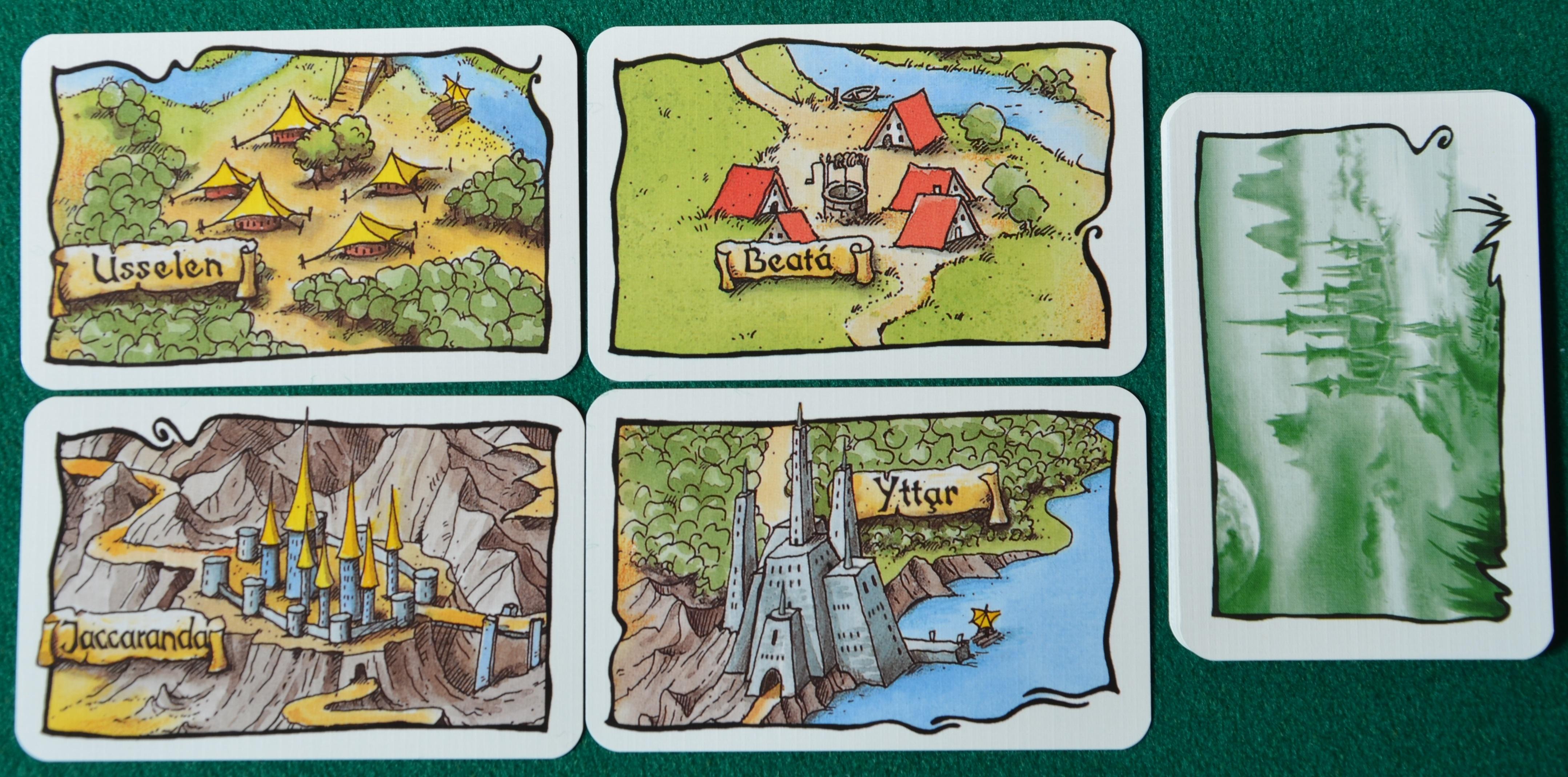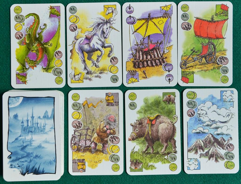 Così, per fare un esempio, il “Maiale Gigante” ci può trasportare in Pianura ed in Foresta al costo di una sola carta; esattamente come il Velocipede degli Elfi, il quale però, per due carte, può viaggiare anche in montagna; l’Unicorno vola su boschi e montagne al costo di una carta, ma ne servono due per attraversare il deserto; le zattere invece non hanno bisogno di tessere e muovono lungo i fiumi pagando una carta se seguono la corrente e due se vanno controcorrente, inoltre possono attraversare i laghi al costo di due carte; ecc.