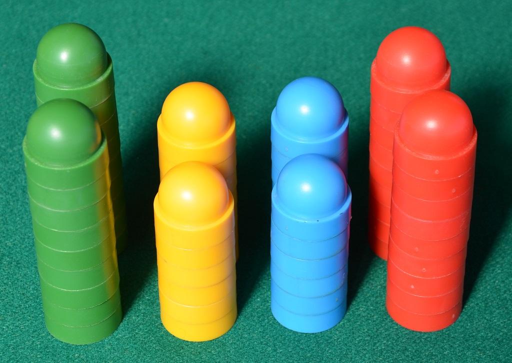 Le pile però sono mosse solo dal giocatore che ha una sua pedina in cima: quindi se una pila è composta, per esempio, da 4 pedine gialle e, in alto, ce ne è una verde, sarà il giocatore “verde” a poterla muovere. Le pile possono essere alte al massimo 5 pedine e quando se ne formano alcune più alte devono essere immediatamente riportate a 5 scartando le pedine più in basso: se queste sono del colore del giocatore che ha appena mosso gli vengono restituite (e potranno tornare in gioco in seguito), altrimenti vengono definitivamente eliminate dal gioco.