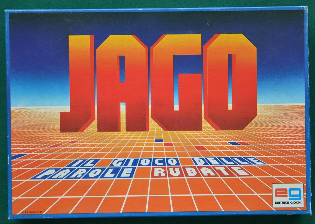 Il sottotitolo di JAGO è “il gioco delle parole rubate” ed indica chiaramente lo scopo principale di questa opera di Alex Randolph. Si tratta di un altro tomo dedicato alla costruzione ed all’incrocio di parole su un tavoliere speciale di plastica con una griglia di 11x11 caselle e 110 tessere “Lettera” di plastica bicolore: blu da un lato e rosse dall’altro.