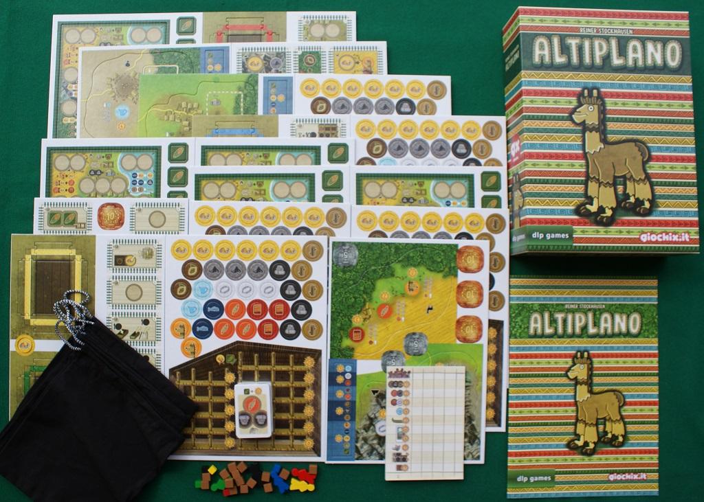 - 1 Tessera "Primo Giocatore" a forma di "Alpaca" in tre pezzi da sfustellare e montare
