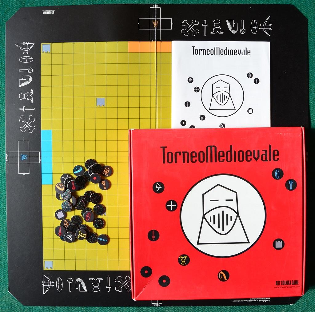 - 20 Gettoni "Arma" (20 mm) da sfustellare: 5 x giallo, rosso, blu e arancione (Armatura, Cavallo, spada, scudo e mazza)