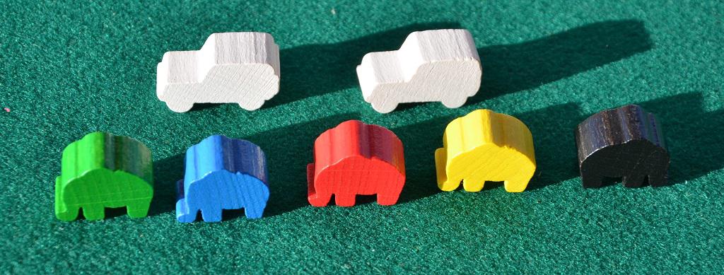 Infine ci sono i “Rangers” la cui jeep viene posata all’inizio della partita a fianco della tessera tripla di base: chiunque metta una tessera sulle jeep fa immediatamente 3 PV e può spostare il segnalino in un qualsiasi altro posto, purché adiacente al paesaggio.