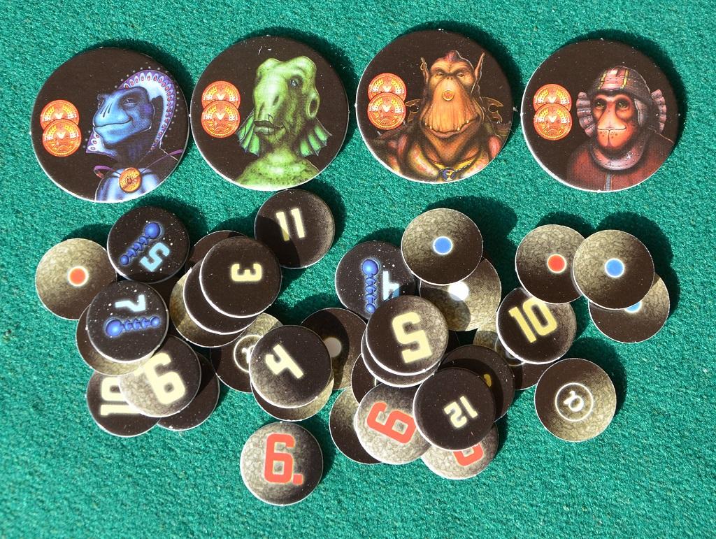 Ogni pianeta di partenza riceve un gettone numerato, mentre altri gettoni vengono piazzati sui pianeti della mappa in base al loro colore: serviranno per accumulare carte risorsa. Tutti gli altri segnalini di plastica (anelli indicatori di carico, razzi ausiliari e cannoni laser) devono esser piazzati sul tavolo a portata di tutti.
