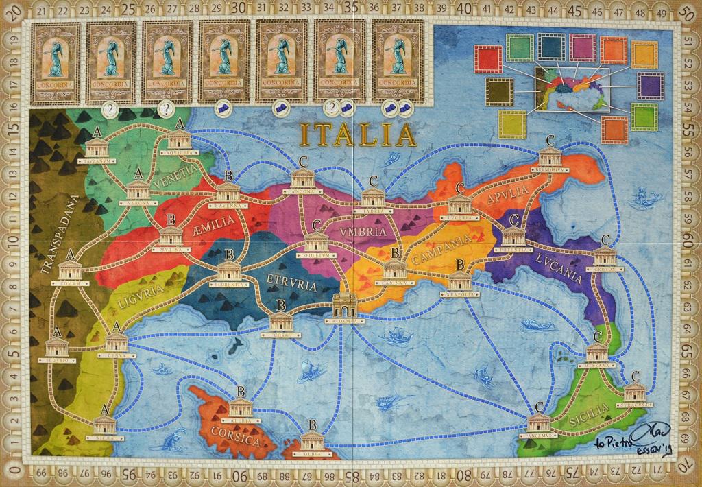 CONCORDIA è un altro esempio di come Mac Gerdts sia in grado di creare opere veramente interessanti senza bisogno di corposi regolamenti, ma lasciando piuttosto agli elementi stessi del gioco il compito di indirizzare i partecipanti.