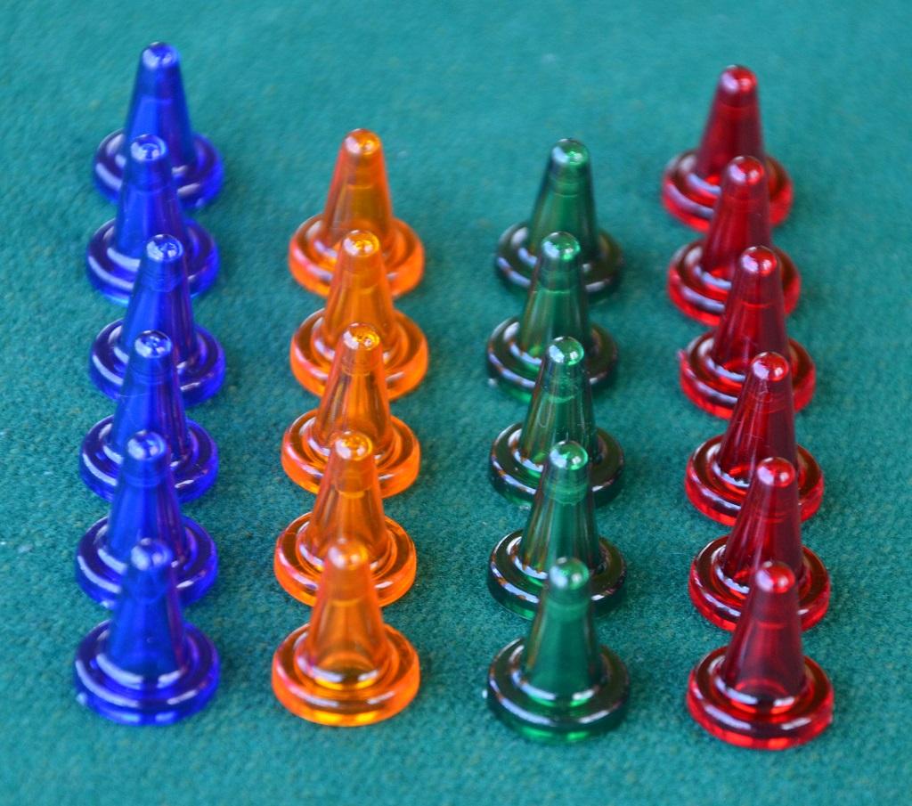 Nella partita a quattro valgono le stesse regole di base, ma se una pedina termina la sua mossa su una avversaria la elimina dal gioco: se una pedina invece arriva nella casella “Base” di un avversario quest’ultimo viene eliminato ma tutti i pezzi che gli restano passano al conquistatore. Vince il giocatore che rimane in campo per ultimo.