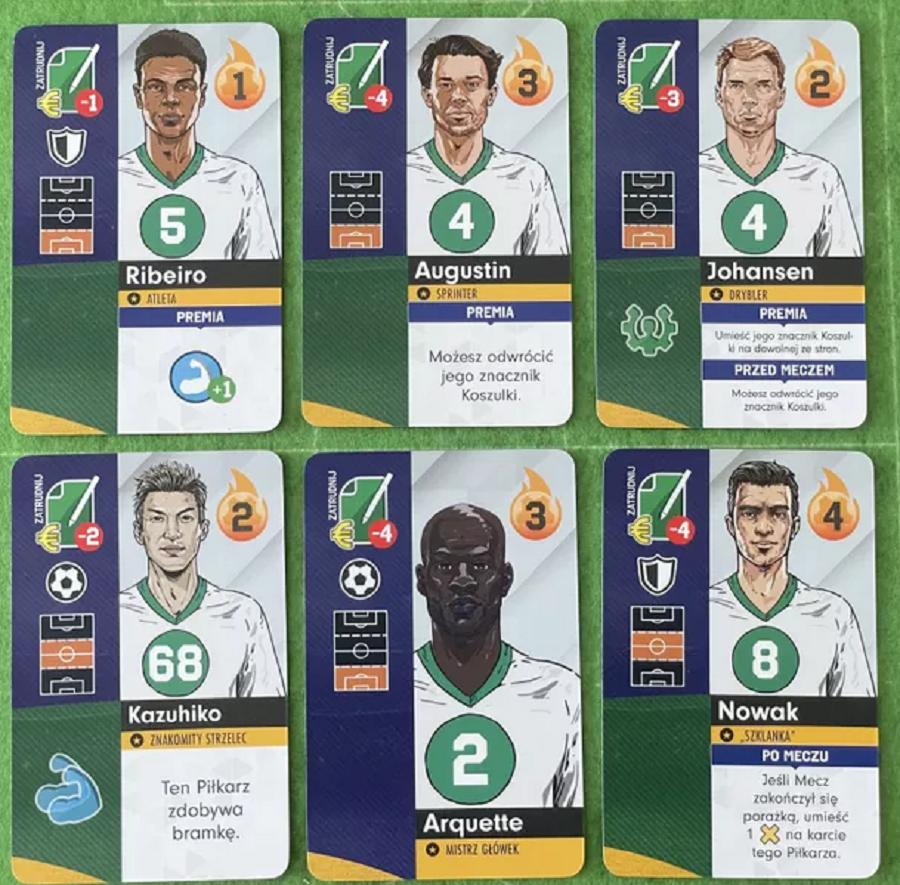 Ogni giocatore parte con 11 tessere “Calciatore”, ognuna delle quali ha un numero di maglia ed un valore di “abilità” pari ad “1”: con questa squadra ovviamente si andrebbe poco lontano, ed è per questo che bisogna acquistare nuovi calciatori (giovani o esperti) sostituendoli a quelli anonimi iniziali che hanno lo stesso numero di maglia. Per poterli acquistare (e per pagare le spese di gestione della squadra) servono però dei soldi, e questi arrivano grazie agli sponsors: in una partita se ne possono acquisire al massimo quattro, quindi bisogna fare bene attenzione a quando e quali scegliere.