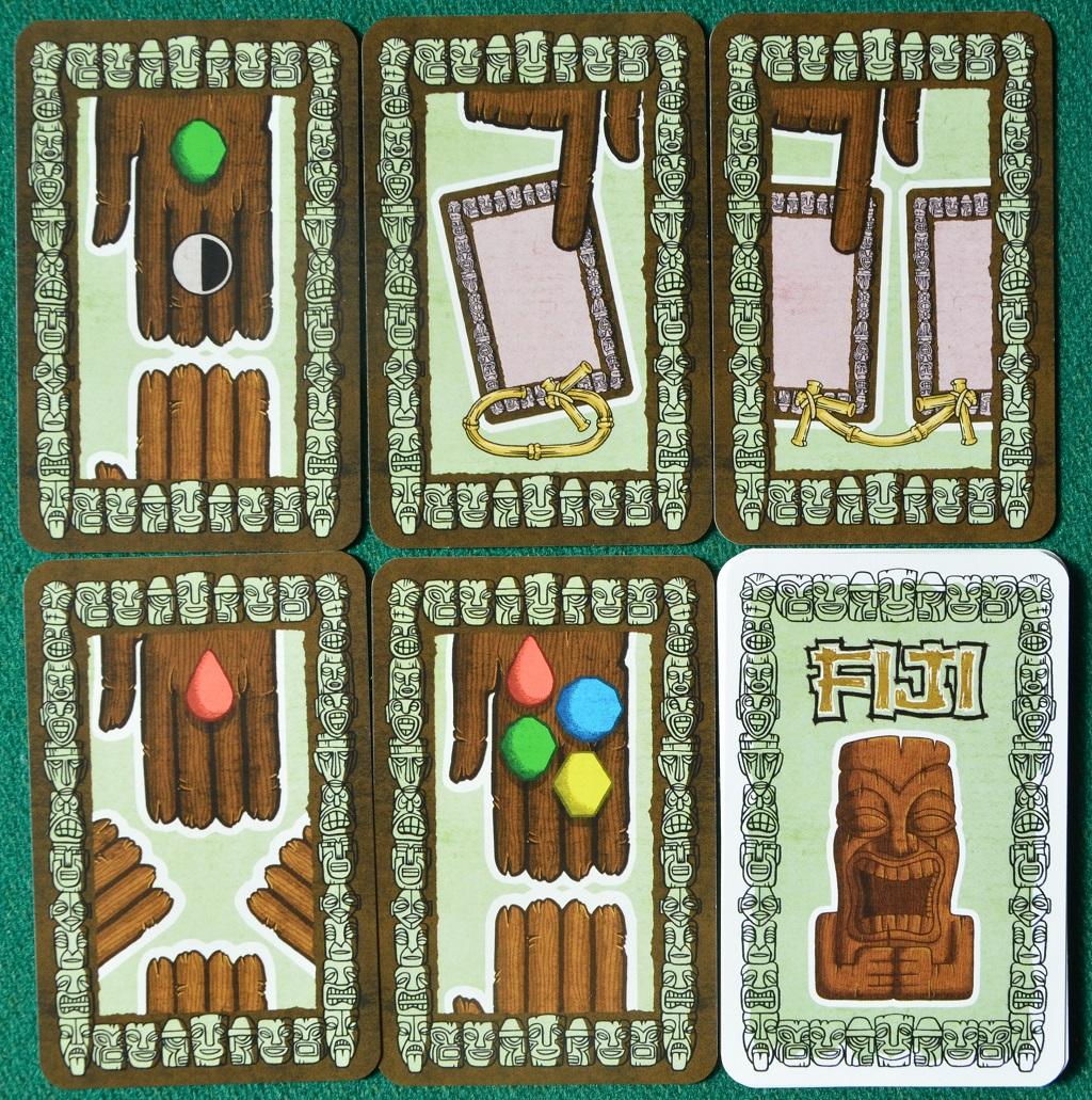 FIJI è un gioco essenzialmente di aste, ma effettuato in maniera molto particolare: i giocatori infatti hanno a disposizione quattro tipi di pietre preziose (rubini, diamanti, smeraldi e zaffiri) e li usano per collezionare o per disfarsi di alcune di esse in modo da rispettare le condizioni di vittoria e guadagnare un certo numero di “teste rimpicciolite”.