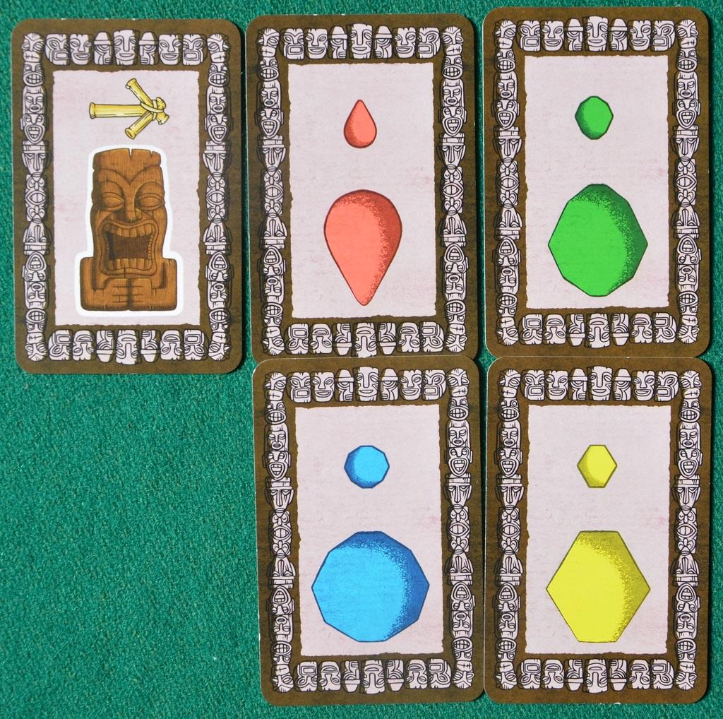 Se la carta mostra in alto il disegno grande significa che l’obiettivo del turno è avere “il maggior numero” di pietre di quel tipo: se il disegno è quello piccolo naturalmente bisogna cercare di sbarazzarsi di tutte quelle pietre.
