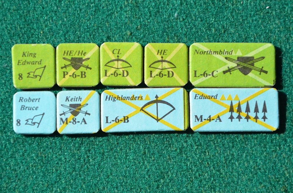 A Bannbockburn, per esempio, gli Inglesi, superiori di numero e con una formidabile cavalleria pesante, sono però molto penalizzati dal terreno acquitrinoso in cui si trovano al momento dell’attacco scozzese, quindi perdono di solito molto tempo nel riuscire ad attivare la maggior parte delle formazioni di fanteria.