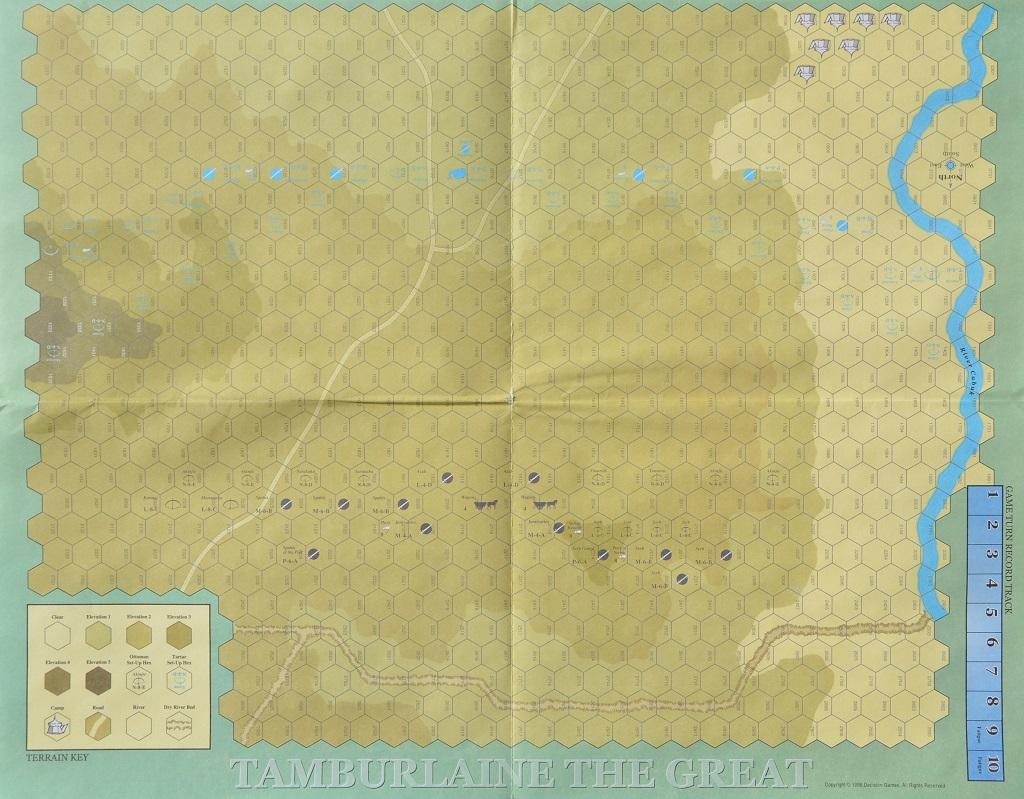 Con TAMBURLAINE THE GREAT ci spostiamo ad Ankara (o Ancyra, o Angora) per ritrovare i due eserciti schierati: da una parte ci sono i Turchi Ottomani affiancati dai loro alleati Serbi e schierati su una collina, mentre di fronte Abbiamo Mongoli, Tartari e qualche unità Indiana, in numero superiore (circa 140.000 contro 85-90.000). Tamerlano, comandante dei Mongoli, fece addirittura deviare il fiume sul quale si era accampato il nemico per lasciarlo senz’acqua (oltre 5.000 uomini morirono di sete) e provocò quindi l’attacco dei Turchi che, colpiti ai fianchi dagli arcieri mongoli, e traditi dalla cavalleria Tartara (passata al nemico) furono pesantemente sconfitti.