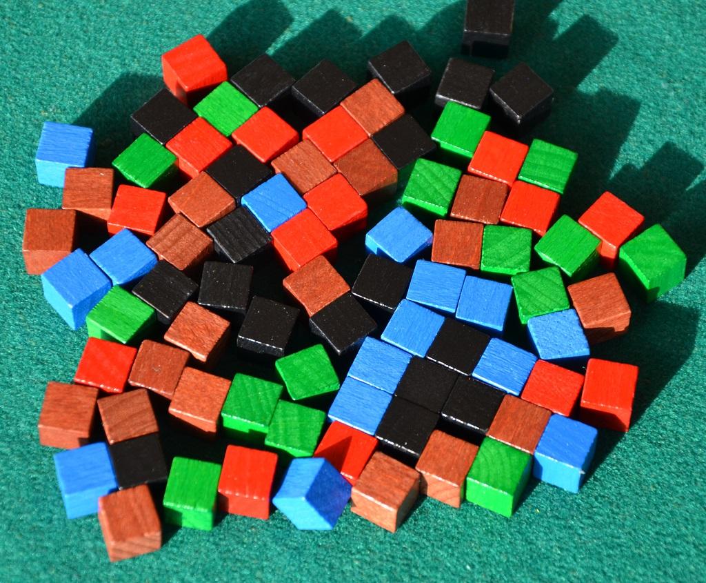 Meglio ricordare che chi raccoglie 4 risorse (o meno) in un turno si troverà poi in difficoltà per l’intero turno e dovrà accontentarsi di fare il … minimo sindacale (per non essere completamente fuori dal gioco), ma dovrà rassegnarsi a tenere in riserva almeno un paio di cubetti per operare meglio nel turno successivo.