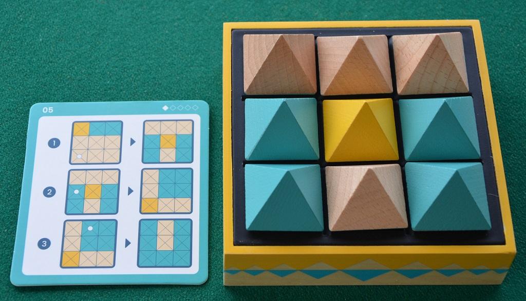Ogni Sfida propone di risolvere un enigma in tre fasi successive: per prima cosa si toglie il pezzo indicato, poi si muovono gli altri (ribaltandoli nello spazio vuoto, in maniera simile al classico gioco del “15”) per arrivare alla configurazione richiesta.