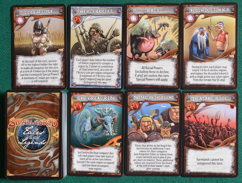 TALES & LEGENDS è una espansione un po' fuori dell'ordinario per questa serie. Essa aggiunge infatti un mazzo di carte "Evento" al gioco base: ad inizio partita verranno pescate a caso "x" carte da un mazzo di 54, dove "X" è uguale al numero di turni della partita meno 1. Accanto al tabellone si aggiungono inoltre una carta "EVENTO CORRENTE" ed una "EVENTO SUICCESSIVO". Partendo dal secondo turno (nel primo non ci saranno eventi) si pesca una delle carte selezionate inizialmente che varrà per il turno "corrente, mentre una seconda carta sarà girata e sarà valida nel prossimo turno. I giocatori devono eseguire le azioni richieste dalla carta del turno corrente, a volte accompagnata dalla necessità di eseguire un'asta per evitare di subire delle penalità.