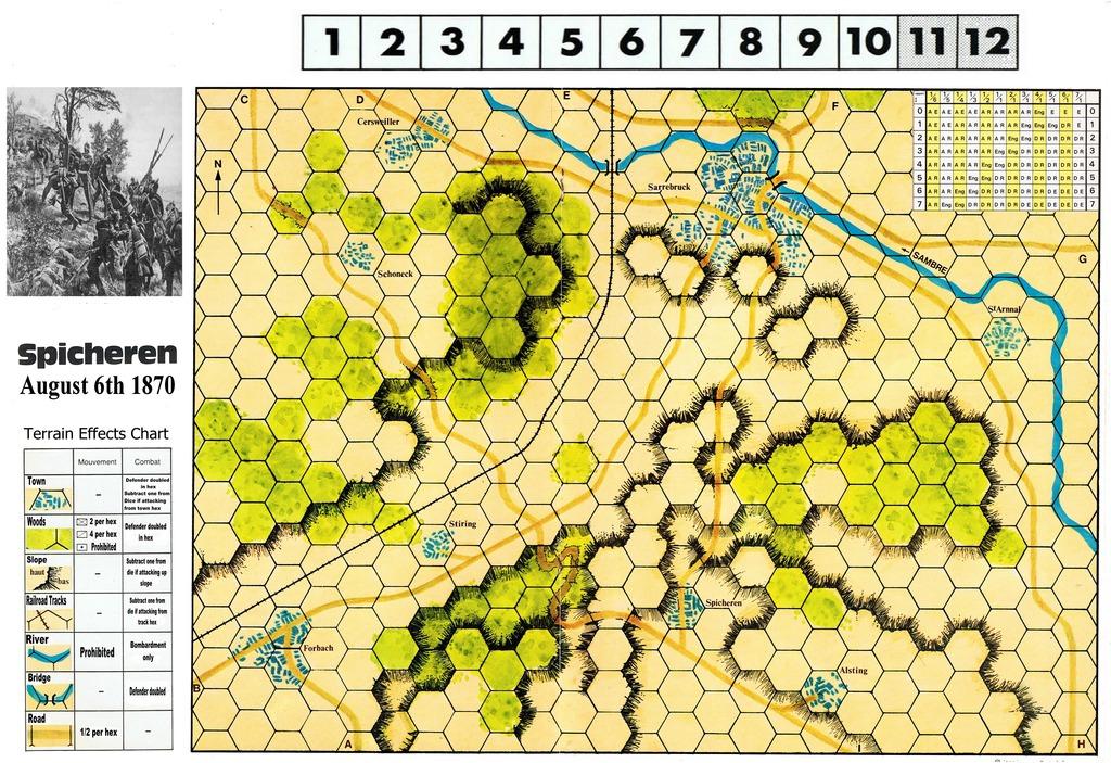 | Ipotetico | Petit Jean Jacques | 1983 | Jeu de base | Guerra Franco-Prussiana : 1870-1871 | 6 Agosto 1870 | Spicheren (Germania) | Francesi Prussiani |