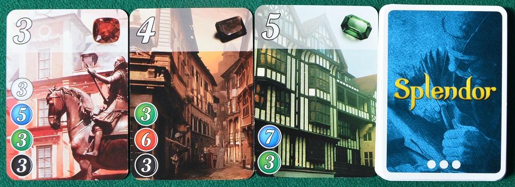 Le carte sono ovviamente il cuore di SPLENDOR ed ognuna di esse, disegno a parte, si distingue per tre caratteristiche: