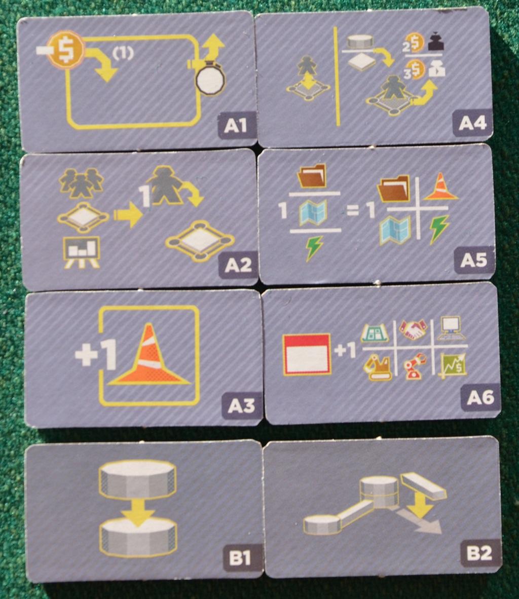 Esaminate a fondo le carte Progetto esposte ad inizio partita e cercate di soddisfarne totalmente almeno una (sacrificando fino a 4 Lobbisti) per guadagnare un numero interessante di PV.