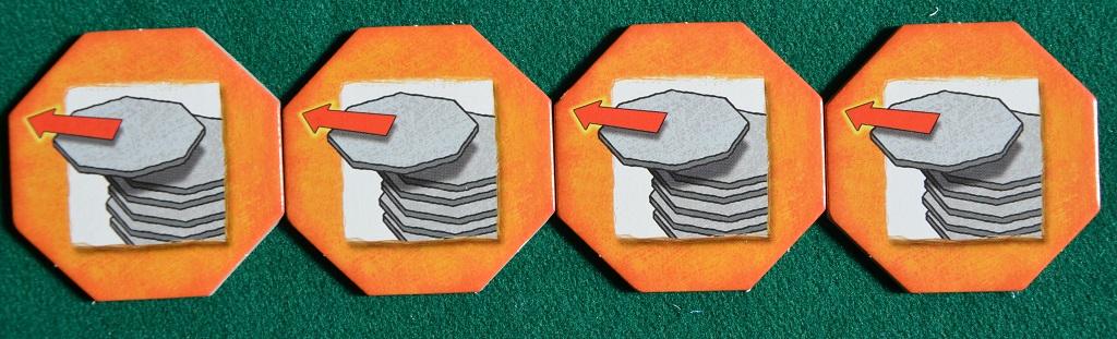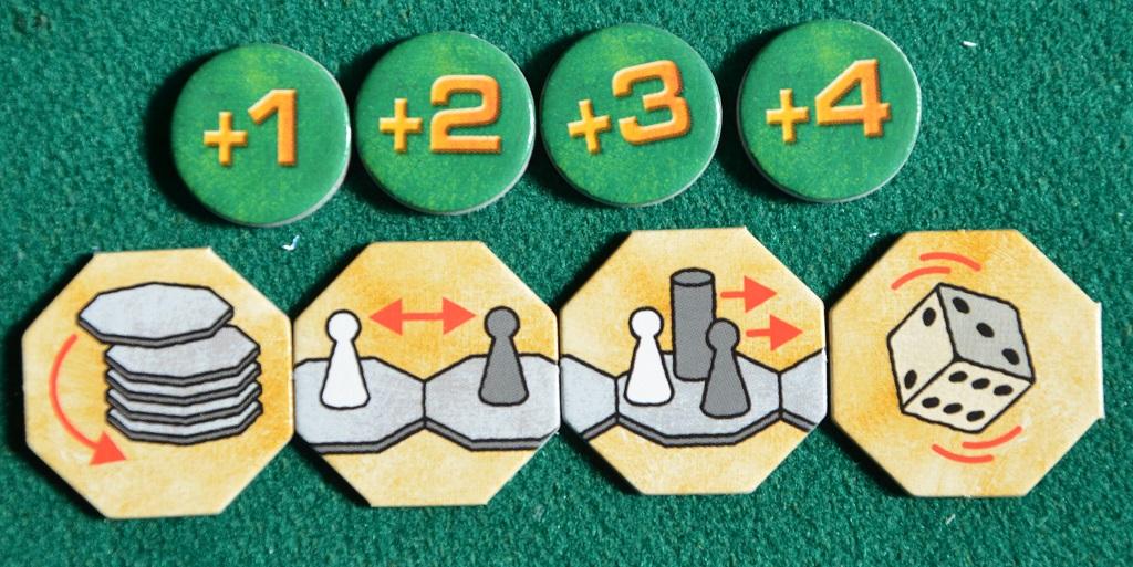 La posizione iniziale delle tessere è fissa: si parte con 8 “rosse” che fanno perdere da 1 a 8 punti, poi si procede con 6 tessere “della fortuna”, passando in seguito a 8 tessere verdi (dove si guadagnano da 8 a 1 punto) per concludere sulla dirittura di arrivo con altre 10 rosse (da “-1” a “-10”). Lo scopo del gioco è raccogliere il maggior numero di tessere positive, sapendo che quelle “della fortuna” trasformano una negativa in positiva.