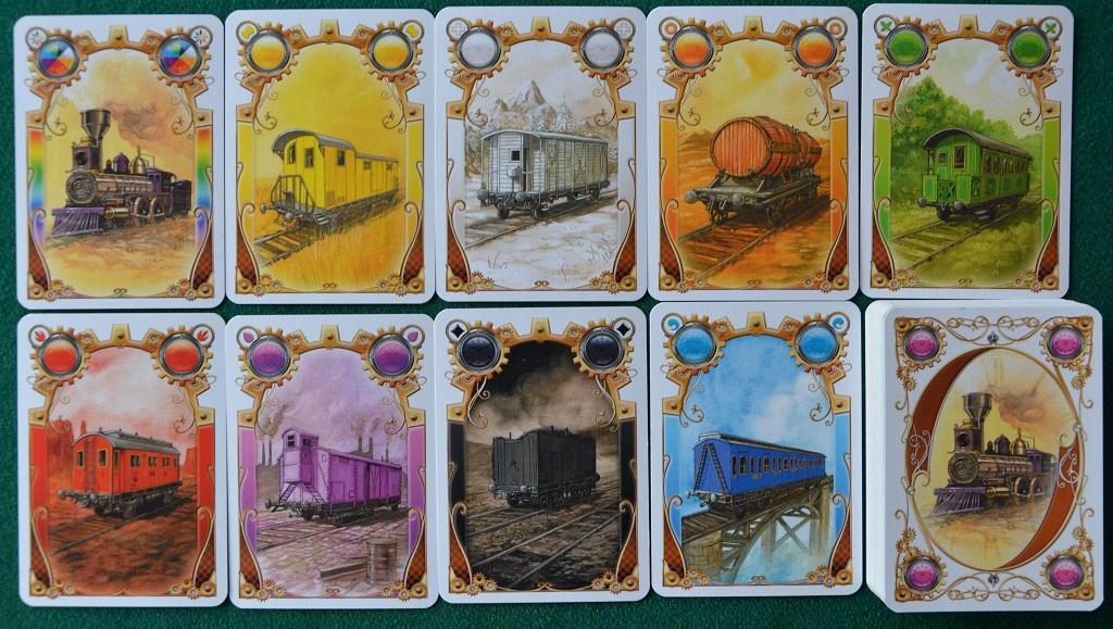 Nel secondo caso devono essere distribuite su tre diversi mazzetti, ma attenzione ... non si possono giocare carte "vagone" di un colore già utilizzato nel proprio deposito e neppure carte di un colore usato da un avversario, a meno che il nostro numero non sia superiore al suo.