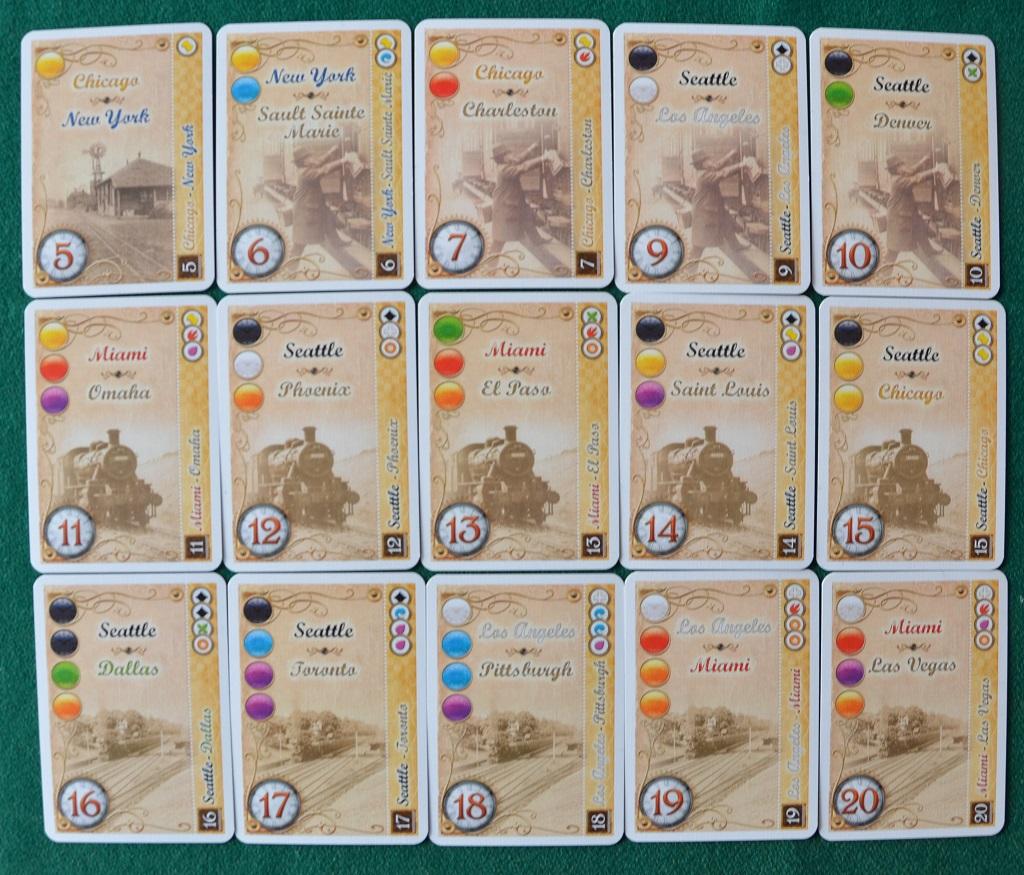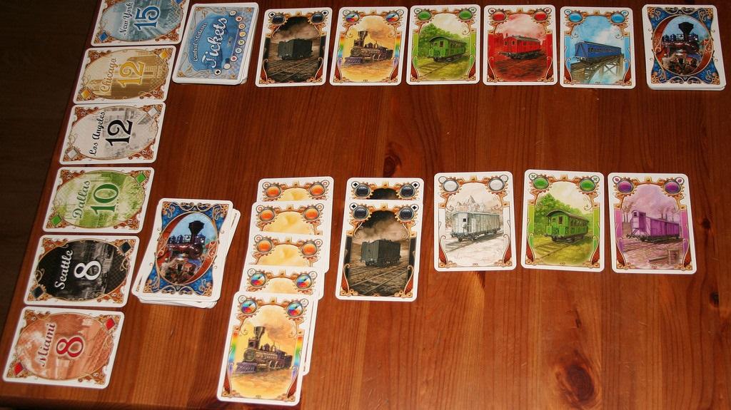 Qui infatti sono permessi solo due tipi di posa: 2 o più carte dello stesso colore (con o senza locomotive, che qui fungono da Jolly) oppure 3 carte di colori diversi. Nel primo caso le carte vengono messe in un mazzetto unico (ogni colore avrà la sua pila).