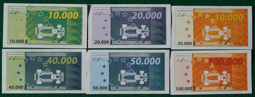 I giocatori ricevono banconote per un totale di 200.000 dollari ed un “pacchetto” di carte “Movimento” il cui numero dipende da quanti sono i partecipanti: tutte le carte infatti sono sempre distribuite in maniera equa (scartando eventuali rimanenze). Ognuna mostra una o più “bande colorate” accompagnate da un grosso numero: le “bande” indicano quali macchine saranno mosse da quella carta ed i numeri indicano di quante caselle avanzerà ognuna di esse sulla pista.
