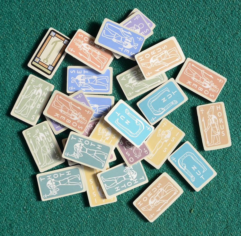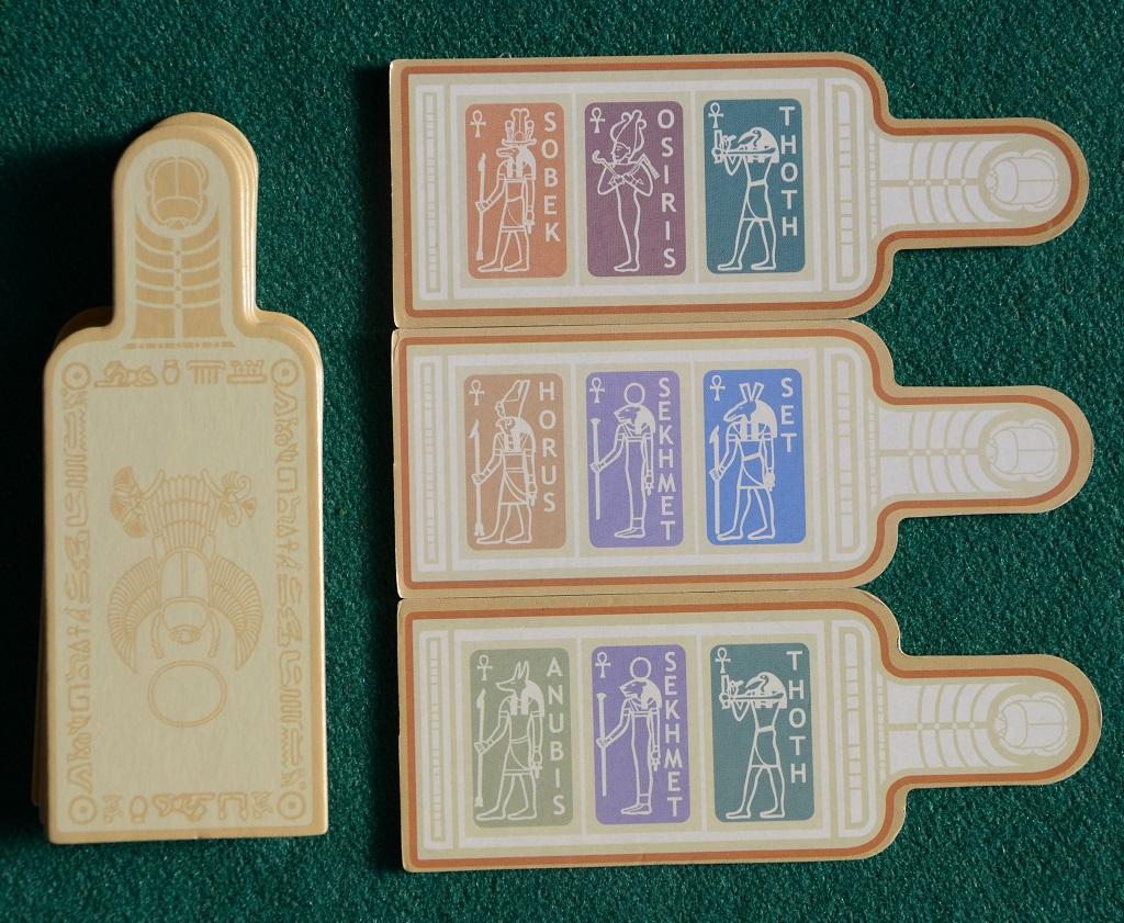 Il mazzo comprende anche un certo numero di carte “Fortuna” che, se giocate al momento opportuno, permettono di annullare un raid, eliminare una carta ostacolo o impedire l’attacco della mummia. Inoltre possono essere usate come Jolly quando si vuole prendere una tessera “Reperto” e manca un simbolo. Rimanere senza carte è una vera iattura, quindi prima di spenderle pensateci bene e cercate di rimpinguare rapidamente la vostra scorta.