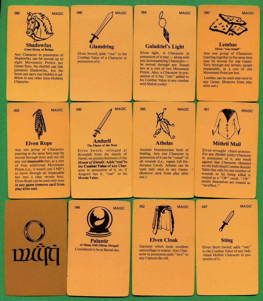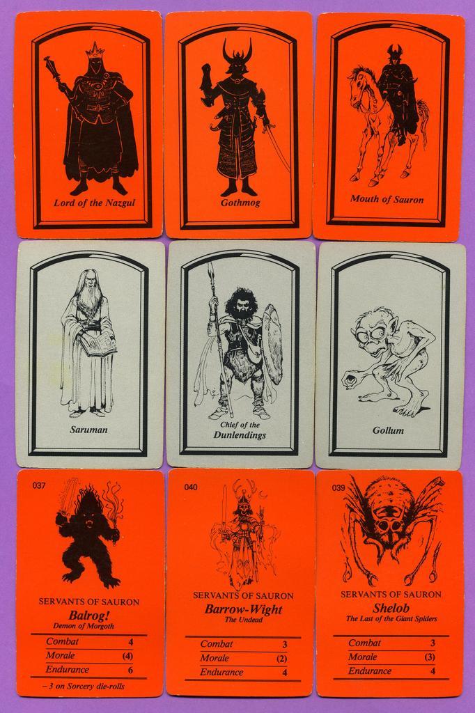 | The Character Game | Berg RichardBarasch Howard | 1977 | Jeu de base | Terra di Mezzo : Battaglie | 1418-1419 Terza Era | Terra di Mezzo | Compagnia dell'anello Saruman Sauron |