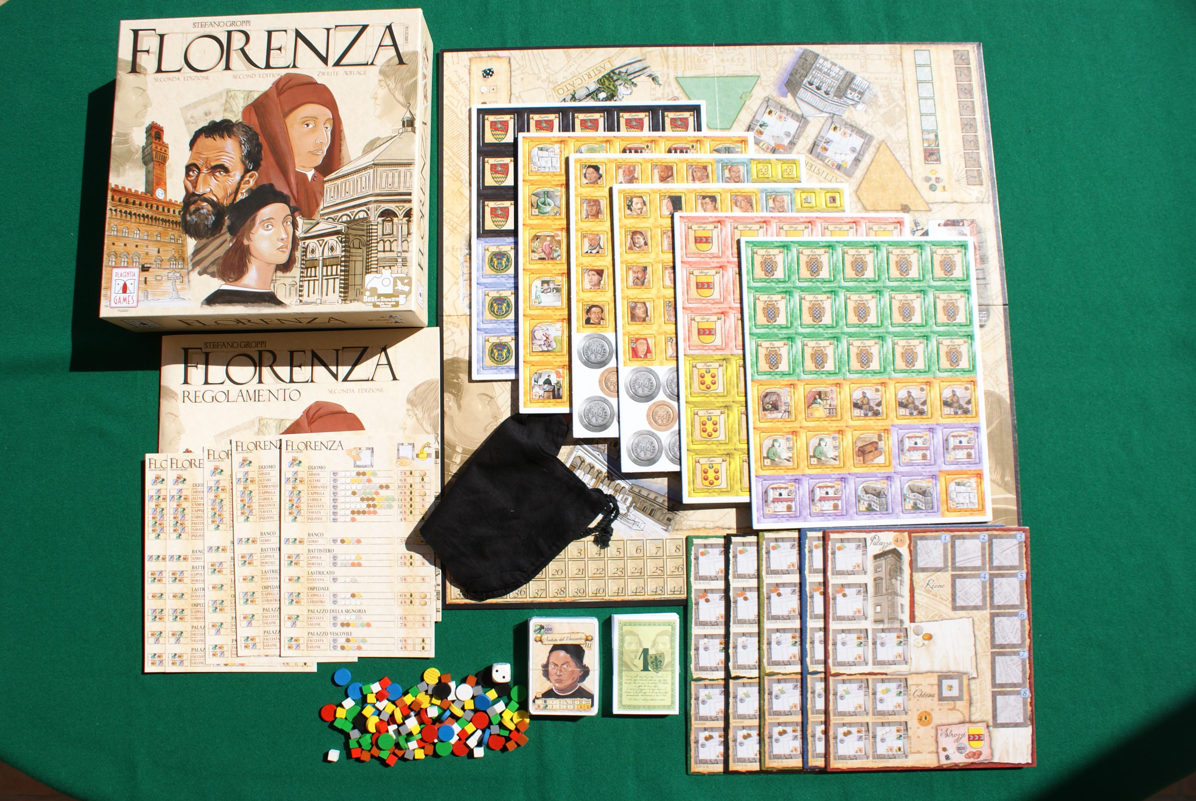 - 5 Plance "Rione" (200x225 mm): 1 x giallo, verde, rosso, blu e nero
