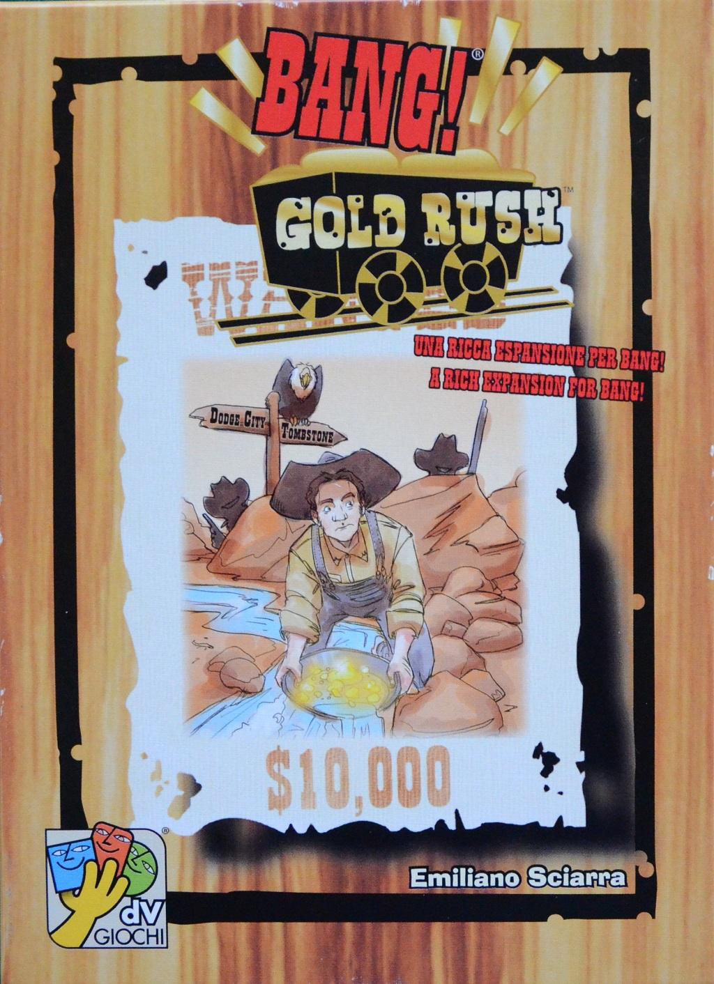 Questa espansione BANG: GOLD RUSH aggiunge 1 carta "Ruolo" (Rinnegato Ombra), 8 nuovi personaggi, 24 equipaggiamenti e 30 pepite d'oro di plastica gialla. Dopo averli ben mescolati gli equipaggiamenti vengono messi sul tavolo, in disparte: poi si girano le prime tre carte del mazzo che restano disponibili all'acquisto: il loro costo varia da 2 a 5 pepite d'oro. I giocatori ricevono una pepita per ogni ferita procurata agli avversari (in qualsiasi modo: Bang, indiani, Gatling, ecc.). Durante la fase delle azioni i giocatori hanno ora altre tre possibilità: