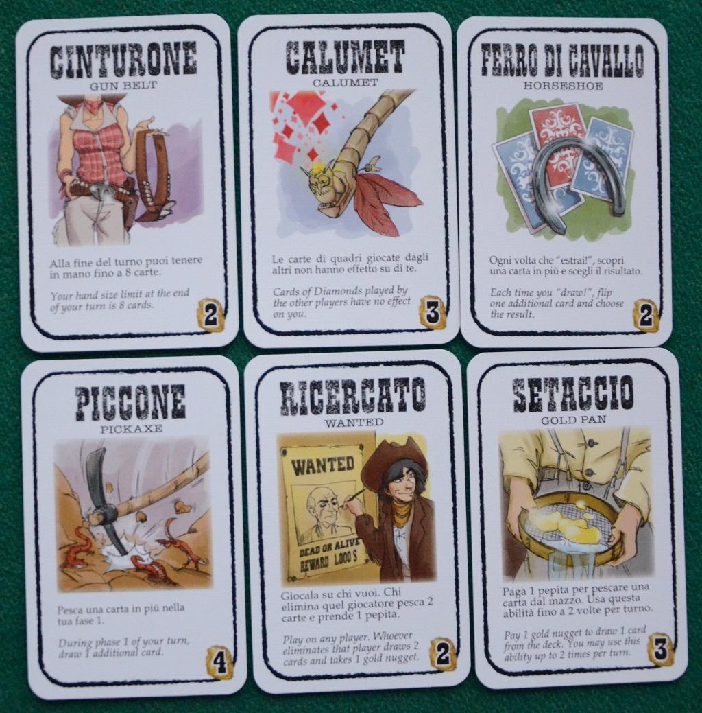 Infine si mescola il mazzo di carte e se ne distribuiscono a ciascun personaggio tante quanti sono i suoi PV. Da notare che ogni personaggio ha una caratteristica ben specifica ed ogni “ruolo” ha una missione da compiere per vincere. Prima di iniziare il gioco lo Sceriffo mostra pubblicamente la sua carta ed assumerà anche il ruolo di primo giocatore.