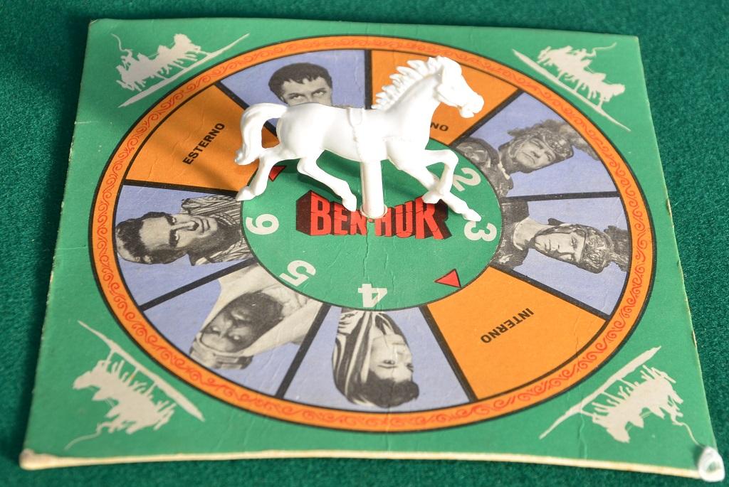 Si tratta di un gioco del 1959, uscito per sfruttare “commercialmente” il grande successo del film che porta lo stesso nome, BEN HUR (con Charlton Heston, tra gli altri) e si riferisce alla scena della corsa delle quadrighe nell’arena.