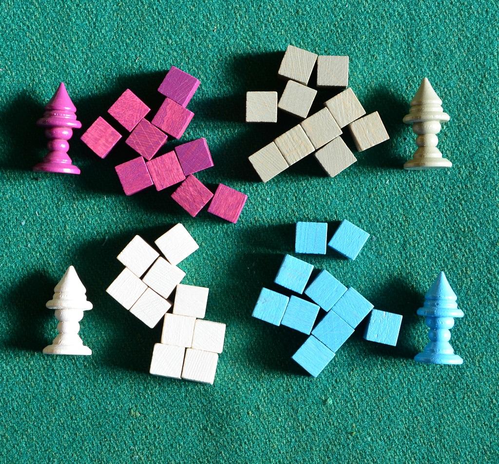 Tutte le costruzioni finite servono anche a dare un bonus a chi completa un edificio adiacente, quindi dopo le prime mosse è bene cercare di chiudere in fretta gli edifici adiacenti a più costruzioni già finite in modo da massimizzare i guadagni. Se tutte le tessere sono state costruite la partita ha comunque termine e chi ha il punteggio totale più alto nell’obelisco delle offerte vince. Altrimenti la vittoria va a chi arriva per primo al numero di offerte richiesto: 6-5-4 se si gioca in 4-3-2.