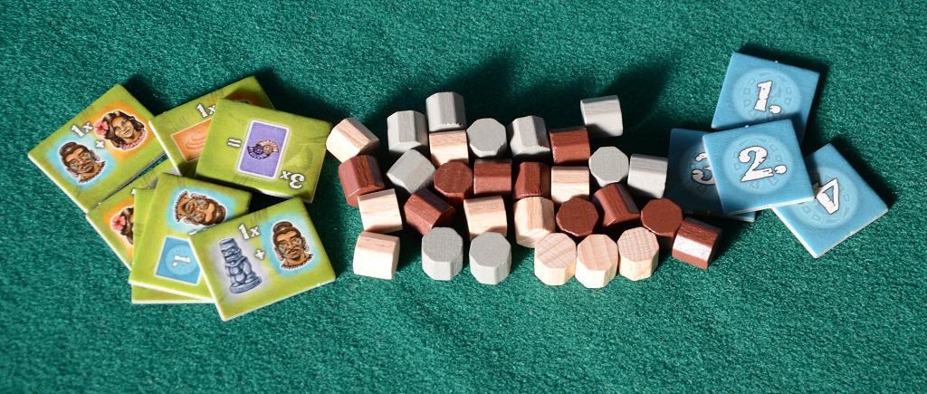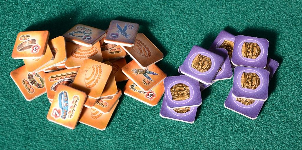 Le conchiglie si ottengono invece attivando le Donne e si potranno spendere a fine round per l’acquisto dei gioielli: questi ultimi possono dare anche un buon gruzzolo di PV, a fine partita, senza dimenticare che raccogliendone almeno sei si ottengono 6 PV extra.