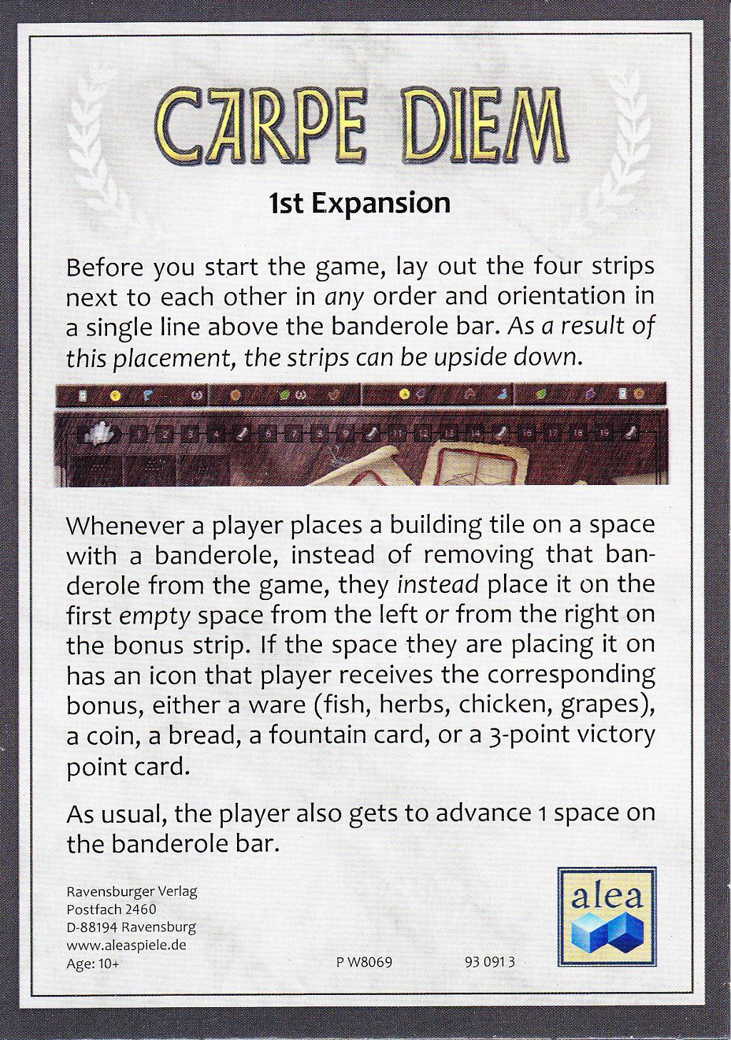 Questa prima espansione è stata inserita nella rivista SPIELBOX 2019/5 e consiste di quattro listelli con dei simboli sopra: i giocatori che piazzano gli edifici su un segnalino del tabellone invece di di eliminarlo dal gioco lo piazzano sul primo simbolo libero della mini -plancia ed incassano eventuali bonus se il simbolo appena coperto corrisponde ad uno già possediuto.