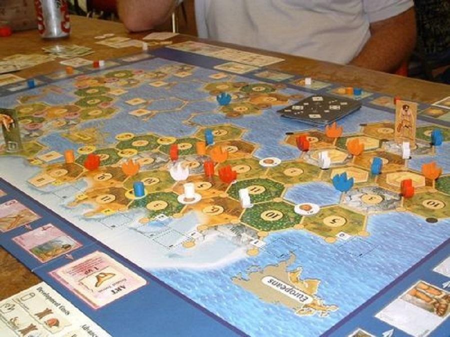 Sempre sulla mappa ci sono 18 quadrati con dei numeri romani (I-II-III-IV) sui quali vanno piazzate apposite tessere “Esplorazione”, coperte, in corrispondenza dei relativi numeri. Due segnalini “preistorici” (“Uomo di Neanderthal” e “Tigre dai denti a sciabola”) sono quindi posizionati nelle due caselle a cavallo fra Eurasia e America.