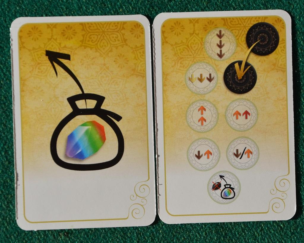 Inizialmente è consigliabile prelevare tutte e tre le gemme da una colonna del Fiore di Loto per piazzarle in un chakra nella posizione medio-bassa della propria plancia (verde, giallo o arancio) il cui colore corrisponda ad una delle gemme prese. In seguito conviene spostare le gemme “estranee”, facendole salire o scendere verso i rispettivi chakra, per poi ripetere l’operazione prendendo due nuove gemme (una delle quali avrà il colore della vecchia) ma utilizzando sempre lo stesso chakra per non “sprecare” altri gettoni “Ispirazione” (ricordo che le gemme si possono mettere direttamente su un chakra solo se esso ha un gettone a fianco).