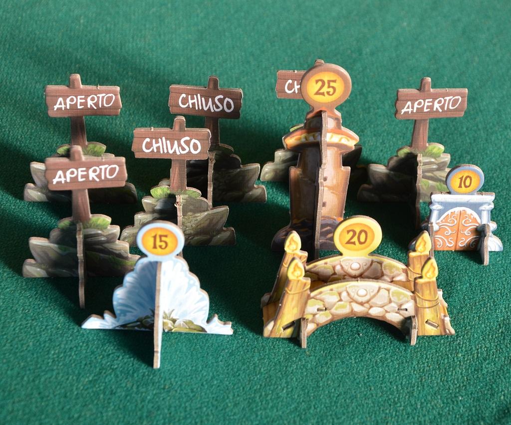 Ci sono anche alcune costruzioni su cui è possibile piazzare degli animaletti per attivare un’azione specifica: mettendo per esempio un lavoratore nel monastero e dando due risorse ad un avversario si ottengono 4 PV; nel cimitero si “riesumano” quattro carte e se ne tiene una, con la locanda si può giocare una carta pagandola tre risorse in meno, con la chiesa si prendono 1 PV e due carte, ecc.