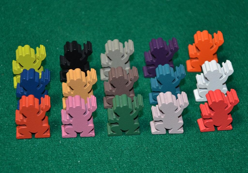 EVERDELL PEARLBROOK introduce nella saga il fiume Pearlbrook e le creature che vi abitano o che vivono negli immediati dintorni: Storni, Lontre, Ornitorinchi e Salamandre (Axoloti), rappresentate sempre con deliziose miniature di legno colorato. Un tabellone a forma di luna illustra i fiume e deve essere accostato a quello base prolungando il fiume. Troviamo anche una nuova risorsa del gioco: le perle, indispensabili per acquistare le carte “Ornamento” e costruire delle “meraviglie” nella propria città. La scatola fornisce infine un nuovo tipo di miniatura: l’Ambasciatore. Ce ne sono 9 di colore diverso, in modo da “coprire” anche gli animaletti del gioco base, e naturalmente si tratta di piccoli anfibi (le Rane) che possono vivere sia a terra che nell’acqua (e sott’acqua).