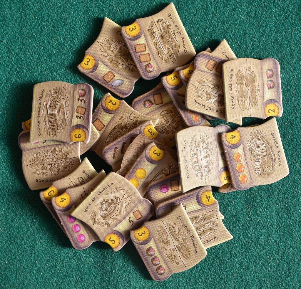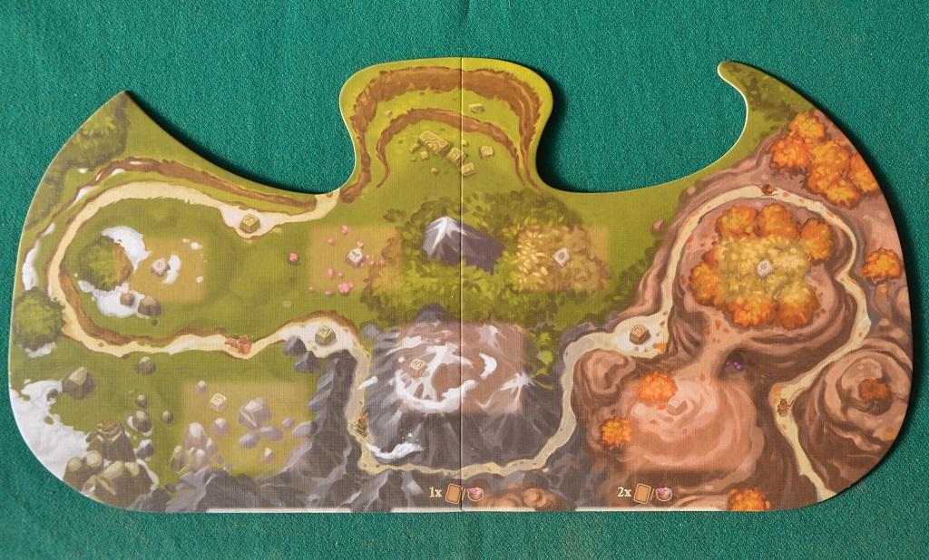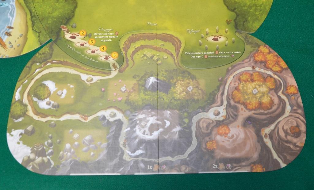 Il “territorio” è costituito da un grande prato (sul quale vengono esposte 8 carte), da un fiume (accanto al quale sarà possibile acquisire delle risorse: legno, pietra, resina e bacche), da un bosco (che conterrà delle carte con ulteriori risorse) e dall’ “Albero Eterno”. Alcune tessere speciali (Eventi Base) sono poste fra il fiume e l’Albero mentre sulle sue fronde sono posizionate altre quattro carte evento ed una parte degli animaletti.