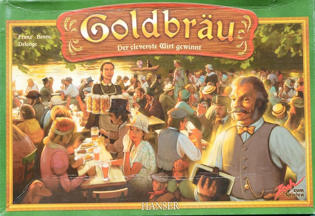 Il tabellone di GOLDBRAU ci fa subito venire in mente l’Oktober Fest” tedesco che ogni anno raduna migliaia di bevitori di birra: infatti sotto una griglia di 5x8 caselle quadrate è raffigurata una piazza con tavoli e panche di legno presi d’assalto dagli avventori. Attorno ci sono 6 birrerie (per servire la clientela ai tavoli), e quattro stabilimenti dove la birra viene prodotta.