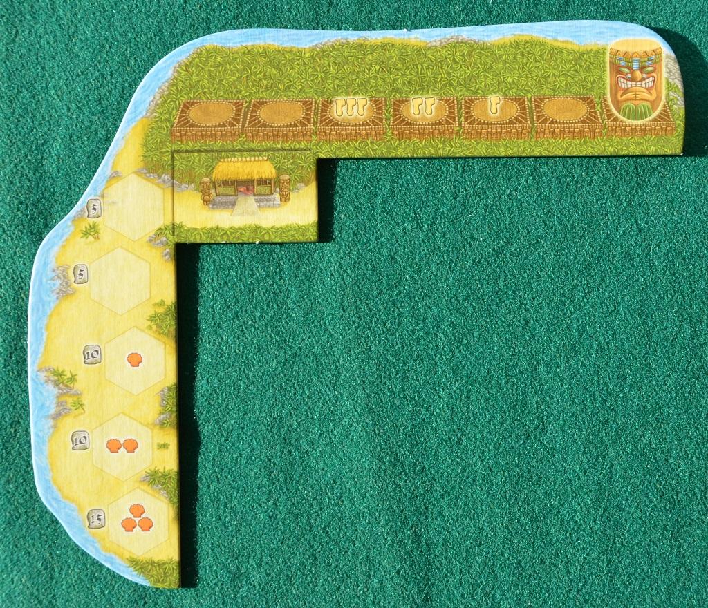 Gli isolotti permettono di ottenere gli stessi materiali ma senza dover andare nelle specifiche tessere e senza pagare le conchiglie (ma hanno un più alto costo in "piedi"). Il punteggio finale tiene conto di moltissimo fattori, fra cui il numero di villaggi "validi" (cioè protetti dai Tiki), il numero di capanne di ogni villaggio, i PV extra delle danzatrici, ecc. Nel complesso si tratta di un gioco divertente e molto competitivo.