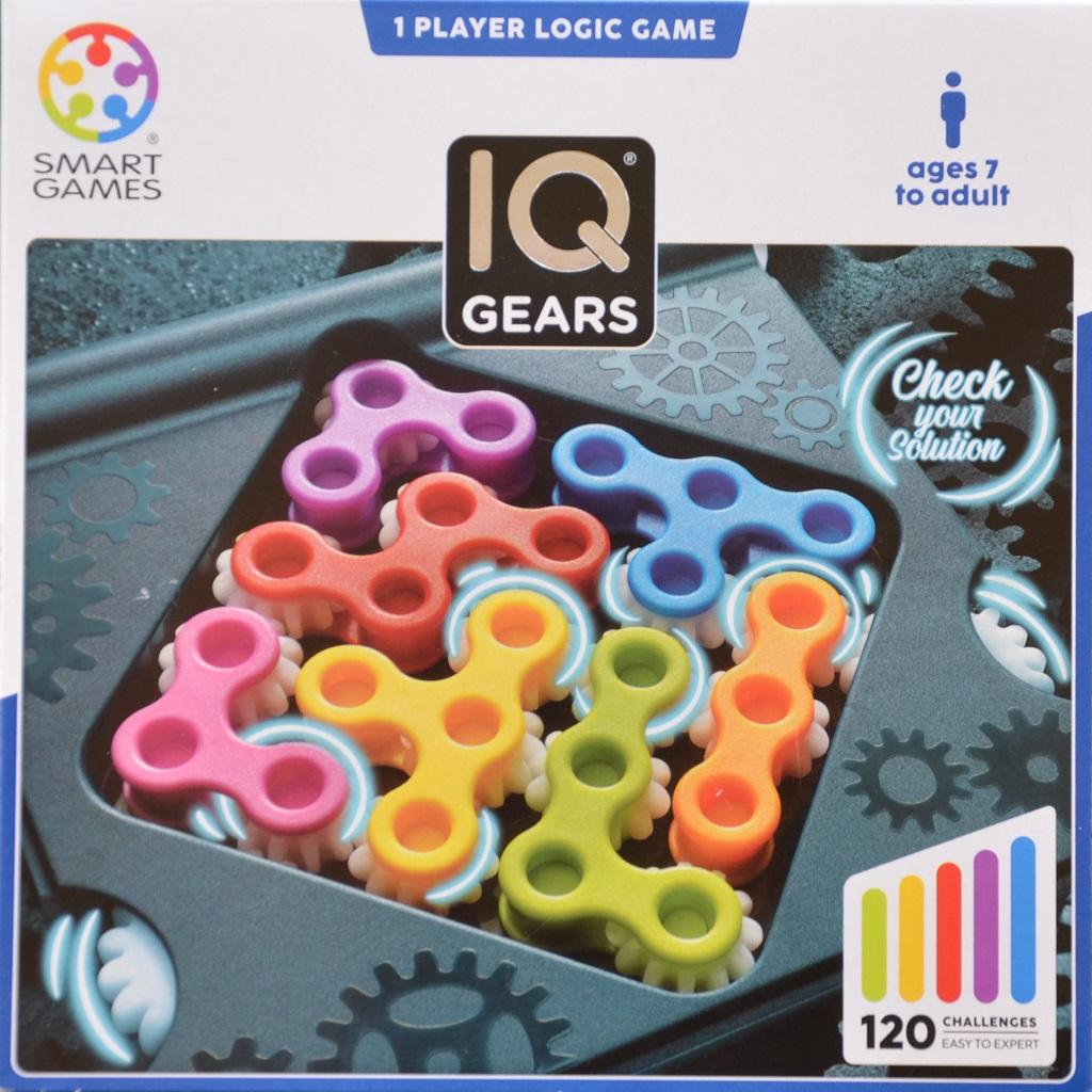 IQ GEARS è un gioco in solitario pensato per tutte le fasce di giocatori, e infatti sulla scatola appare la scritta “da 7 anni fino agli adulti”: all’interno della scatola troviamo un tavoliere ad astuccio (di forma quadrata) con coperchio trasparente, completato da 7 polimini colorati sui quali sono stati montati da 1 a 3 “ingranaggi”.
