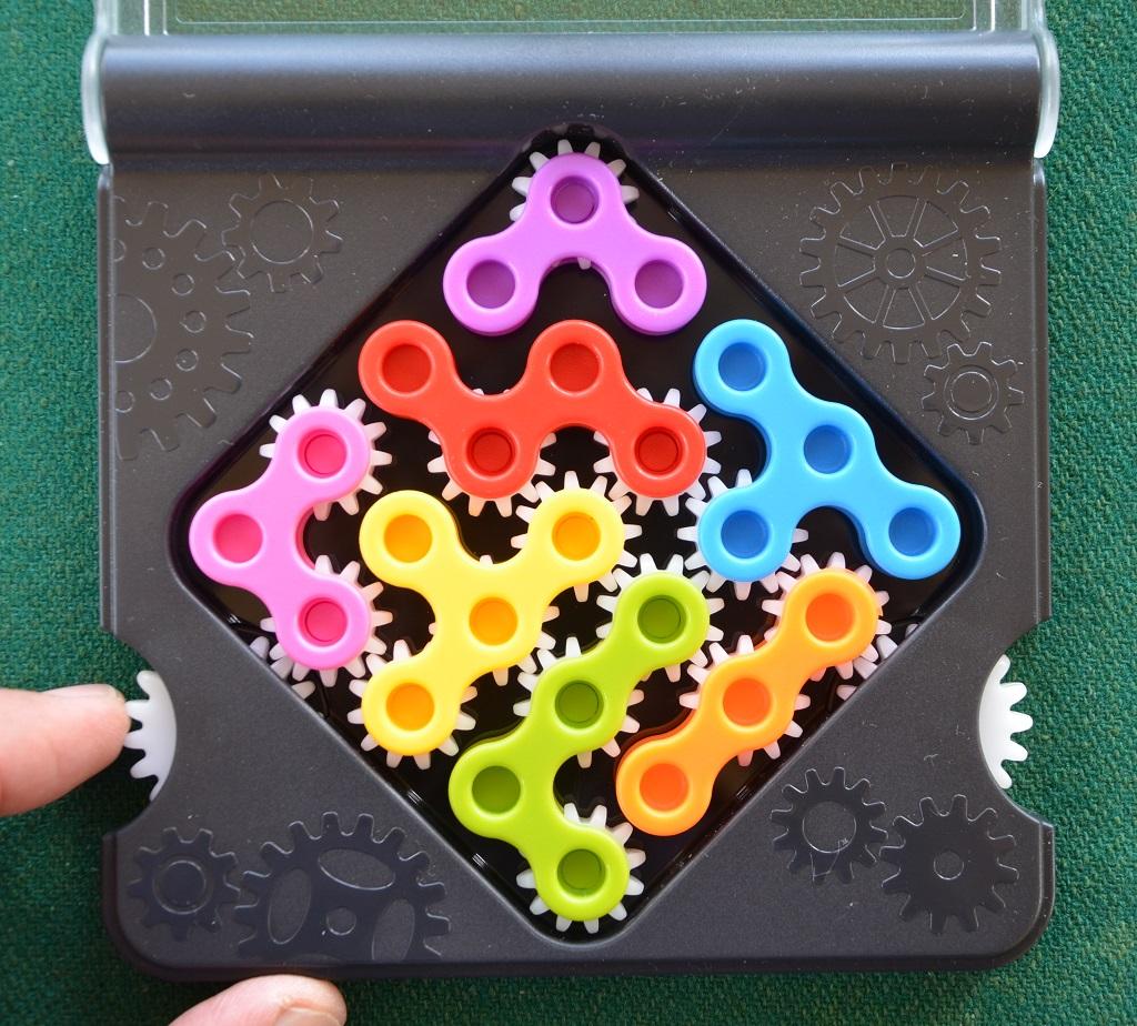 I giocatori non solo devono riempire completamente la griglia con tutti i pezzi, ma devono anche fare in modo che gli ingranaggi si incastrino nel modo giusto fra loro: sulla sinistra del tavoliere c’è una ruota bianca dentata e, girandola, se è stata eseguita la giusta composizione, gli ingranaggi dei polimini si metteranno in modo e dovranno far girare anche una seconda ruota dentata posta a destra del tavoliere.