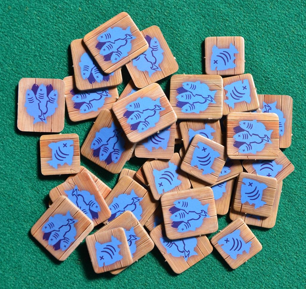 Si mescola il mazzo delle 150 carte “Scoperta” e se ne distribuiscono 7 a testa: ognuna ha un costo in “pesci” (tutti ne ricevono 20 ad inizio turno) e ce ne sono di diversi tipi: dopo una fase di “draft” ognuno decide quali e quante carte acquistare fra le 7 che si ritrova in mano, paga il loro costo e si inizia la seconda fase.