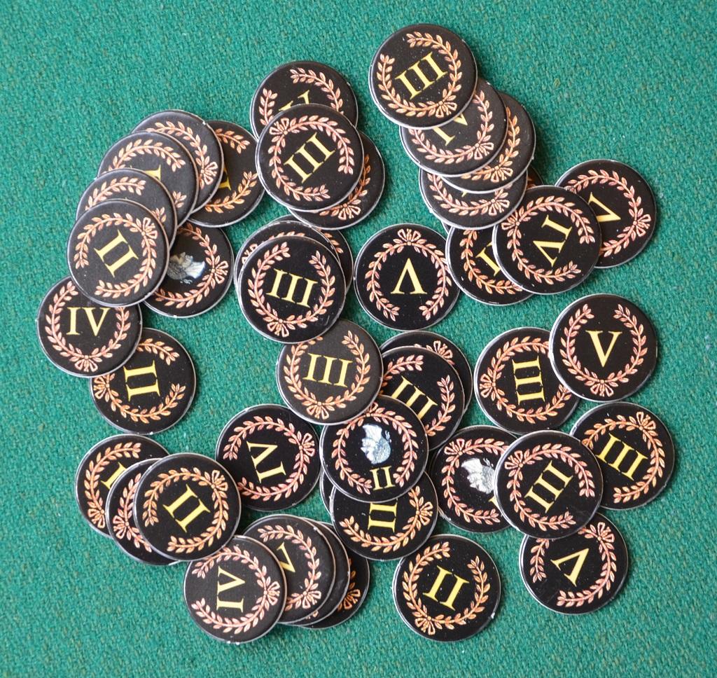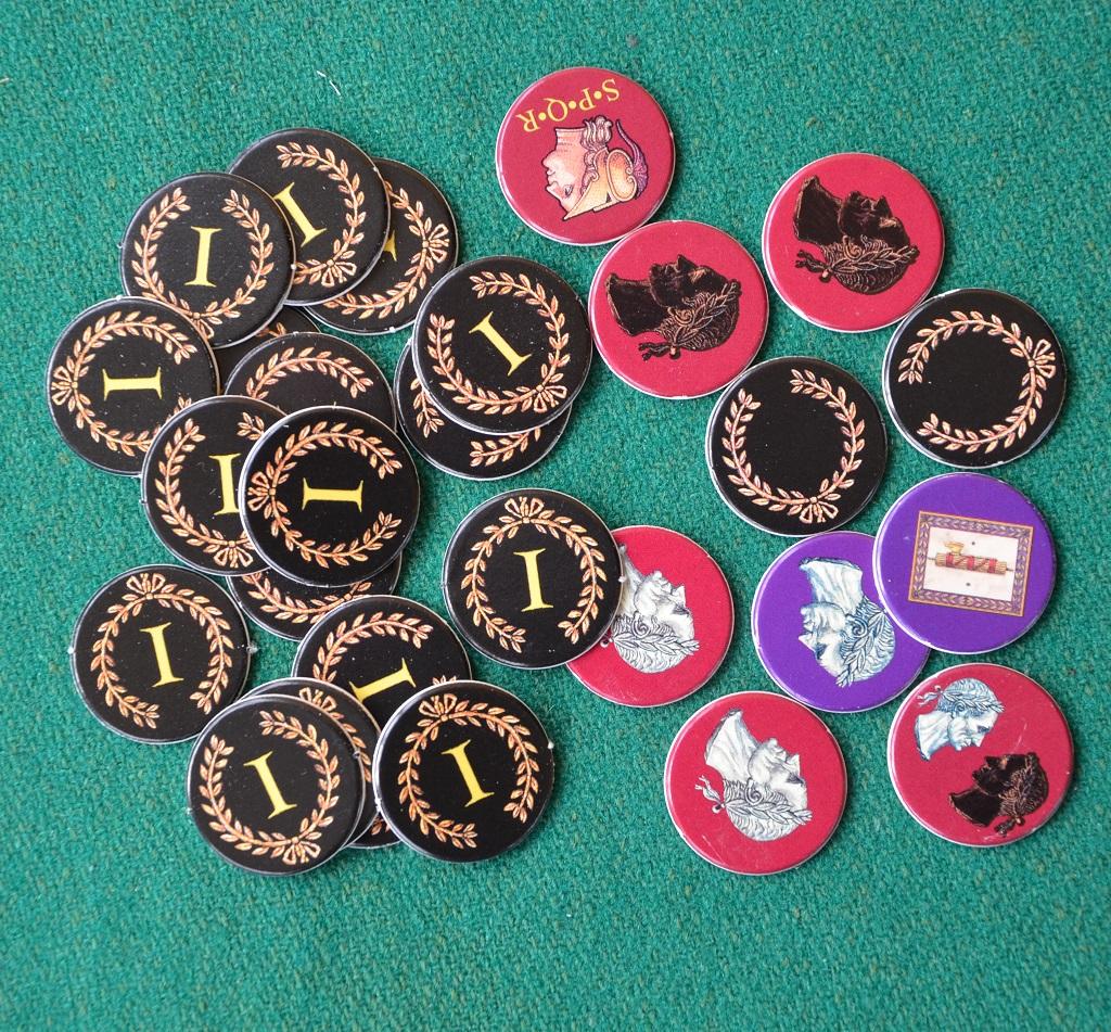 L’uso del gettone “Cesare” è importante: permette di superare un corridoio senza sborsare nulla, ma non è permesso raccogliere il sottostante dischetto PV. Questa possibilità può anche essere usata per avere accesso al Sanctum, in una fase delicata della partita, e riempire così l’ultimo posto libero per impedire ad un avversario di portarci un suo senatore. E senza senatori nel Sanctum non si conteggiano i propri PV (ma naturalmente vi sarete fatti un buon… amico che cercherà di rendervi pan per focaccia nel gioco successivo). Non adatto a chi prende ogni sgarbo come un’offesa personale!!!