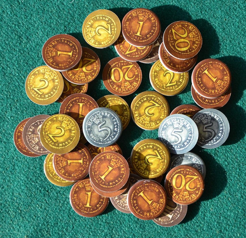 Ogni carta mostra, oltre al tipo di lavorante, anche un "bonus" che il giocatore otterrà quando la giocherà. Tutti ricevono anche una piccola plancia personale che sarà usata per tenere separati il mazzo delle carte ancora da usare e quelle già giocate.
