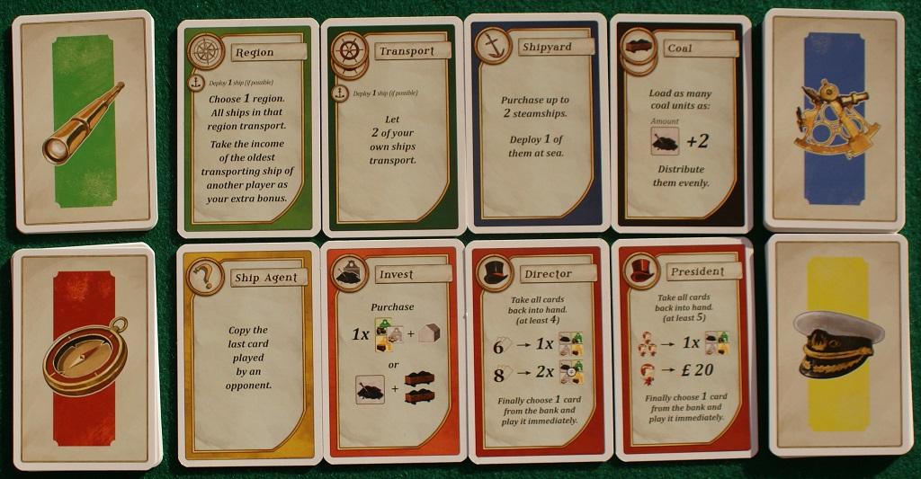 Dopo aver scelto le due navi iniziali (un veliero gratuito ed un vapore acquistato al mercato) i giocatori, a turno, giocano una carta ed eseguono l'azione relativa: