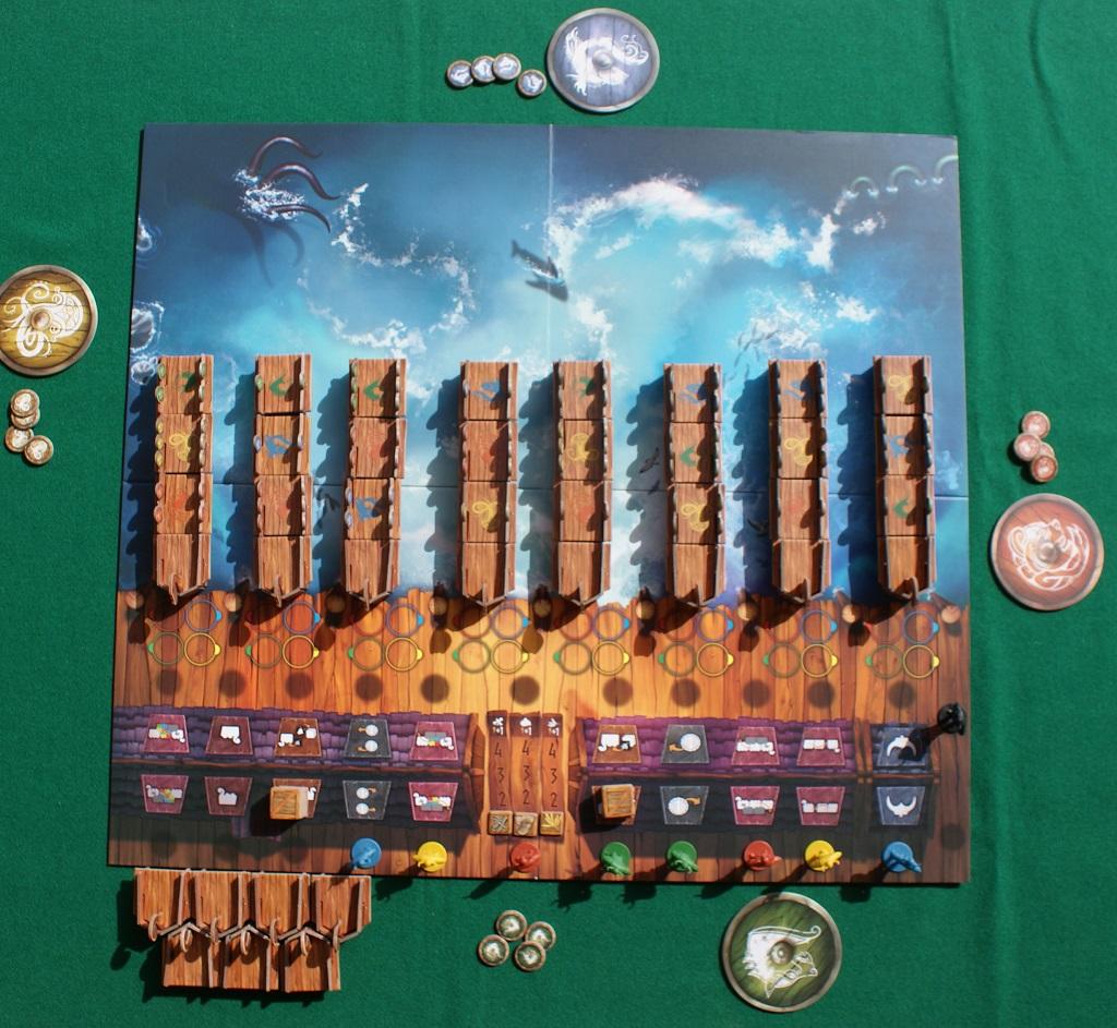 Ad inizio partita 8 navi, formate ognuna da una "prua" e tre parti intermedie, sono ormeggiate nel porto: si sorteggia l'ordine del turno, alternando poi le miniature dei vari colori secondo lo schema indicato sulle regole.