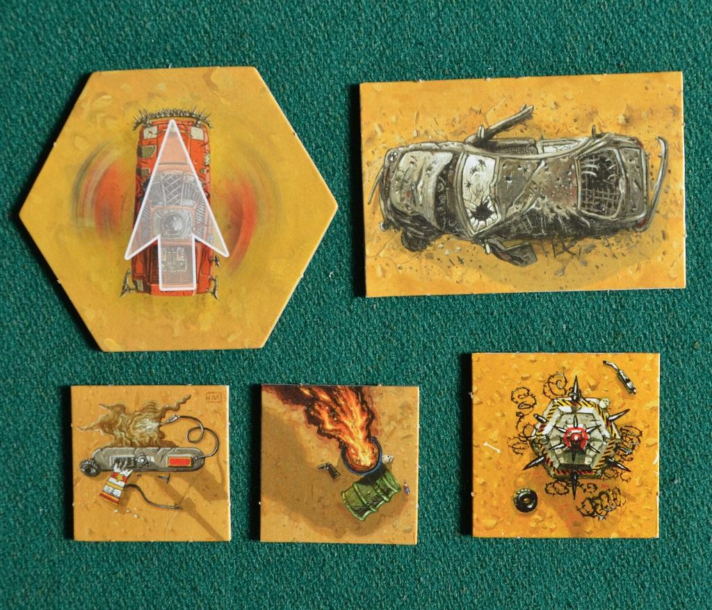 WRECKAGE è da considerare un semplice gioco di “combattimento”: dopo essere stato colpito ogni giocatore prende un numero di carte DANNO pari al valore d’attacco dell’arma che ha sparato (da 0 a 3 colpi) e i danni vengono indicati da appositi segnalini appoggiati sul veicolo colpito. Se la loro somma raggiunge o supera il valore di RESISTENZA del veicolo… BOUUMMM, e l’auto è fuori.