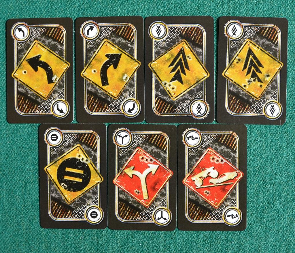 Ad ogni turno TUTTI pongono sul tavolo (coperte) DUE carte GUIDA (per accelerare, rallentare, voltare a destra o a sinistra, duplicare la mossa precedente, ecc.) poi il veicolo che ha la velocità iniziale più alta si prepara a scattare nell’arena e lo scontro ha inizio.